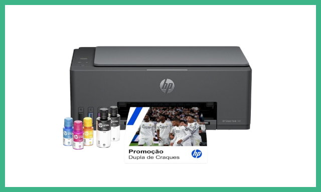 A HP Smart Tank 581 é a aposta da HP para competir com a linha EcoTank da Epson. Seu sistema de tanque de tinta recarregável garante um rendimento impressionante: até 12.000 páginas em preto e 6.000 em cores com os frascos que já vêm na caixa. Isso representa meses ou até anos sem precisar comprar reposição. Outro destaque é a conectividade, com Wi-Fi e suporte completo com aplicativo HP Smart, que permite digitalizar, copiar e imprimir direto do celular. É uma ótima escolha para pequenos escritórios que precisam de confiabilidade e integração tecnológica.